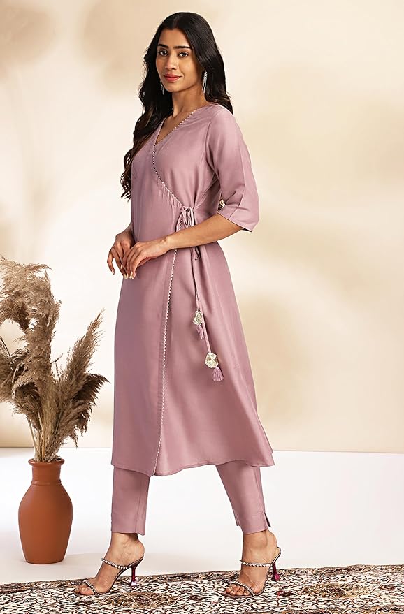 - Kurta Length: 45(Inch) | Pant Length: 37(Inch) | Colour: Lavender | Pattern: Solid | Occasion: Festive | Style: Wrap | Sleeve Type: Elbow Sleeves (Regular Sleeves )