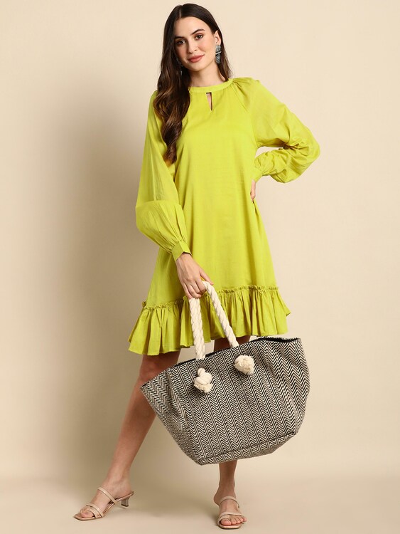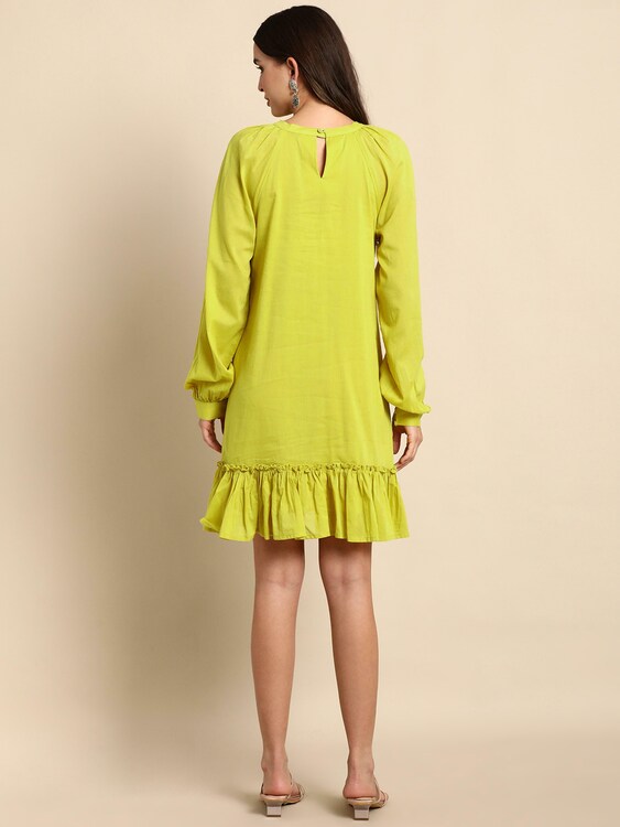 Mustard Cotton Solid Drop-Waist Western Dress