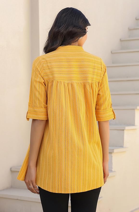 Mustard Cotton Woven Design Gathered Tunic