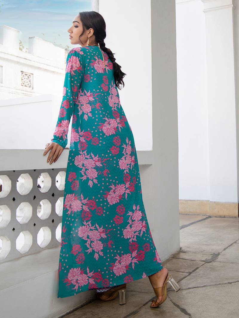 - [ Features ] Spring Summer Set for Women, regular long sleeves, Chevron Georgette Pants, Crop Top, and Palazzo Set, Turquoise Color, Floral and Chevron Pattern, 3-piece Style.